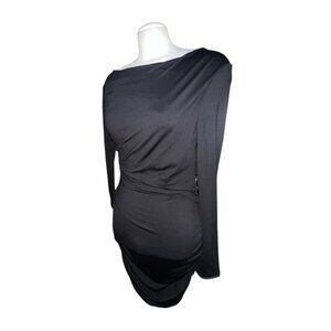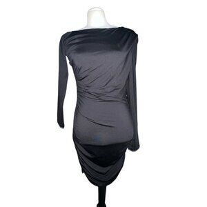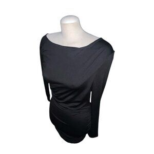 Halara Off Shoulder Long Sleeve Ruched Bodycon Party Dress Sz Medium Womens Blac