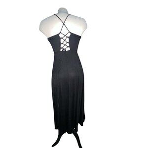 Halara Ribbed Cowl Neck Backless Crisscross Lace Up Split Midi Party Dress Sz Sm