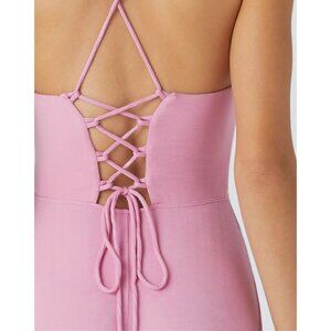 Halara Ribbed Cowl Neck Backless Crisscross Lace Up Split Midi Party Dress Sz XS