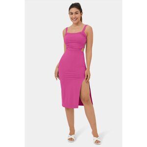 Halara Ruched Backless Crisscross Midi Dress Sz Medium Womens Pink Lace Up Split