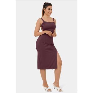 Halara Ruched Backless Crisscross Midi Dress Sz Small Womens Burgundy Lace Up Sp