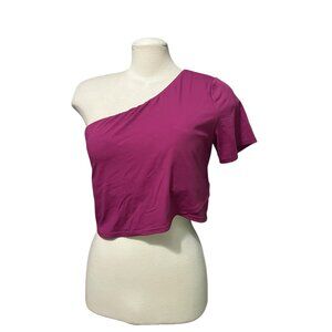 Halara Short Sleeve One Shoulder Crop Top Sz XL Purple Built in Bra