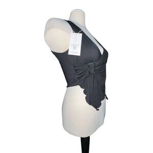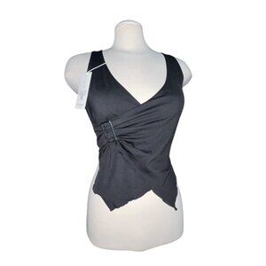 Halara Sleeveless Asymmetric Hem Buckle Waist Tank Top Sz Medium Womens Black