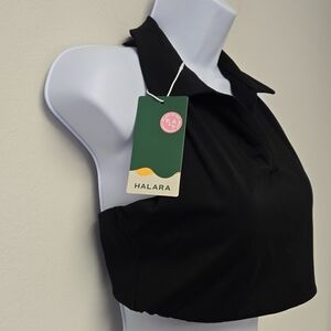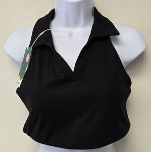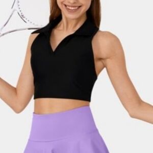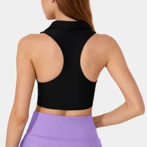 Halara Softlyzero Airy Collared Racerback Cropped Tennis Tank Top Black M