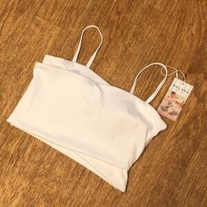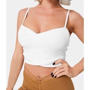 Halara Spaghetti Strap Crossover Plain Cropped Tank Top in White Size Small