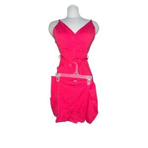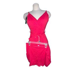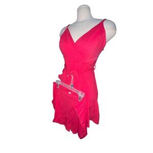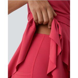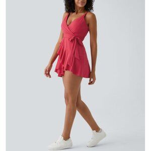 This is a New with Tags Halara V Neck Backless Mini Casual Dress with Adjustable Strap Tie Side Ruffle 2-Piece Side Pocket Flowy