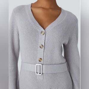Halara V-neck Button Front Long Sleeve Belted Mini Sweater Dress