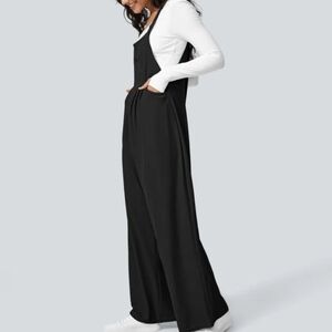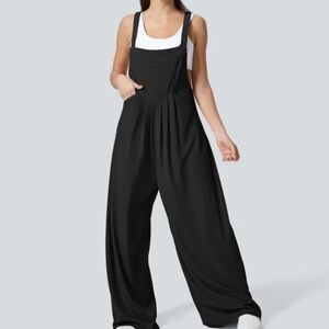 Halara Waffle Knit Adjustable Jumpsuit Overalls Black L