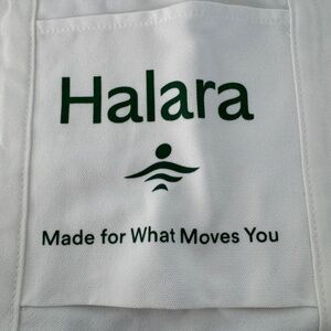 Halara Large White Canvas Tote Bag. Hunter green logo and lettering. New with tags and original packaging. Spacious 18" x 13" canvas tote.