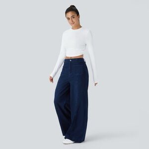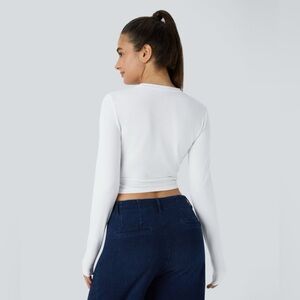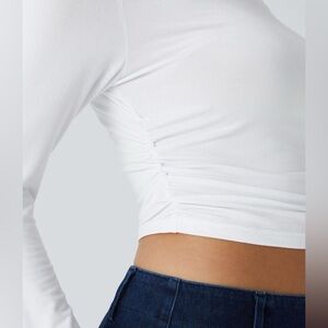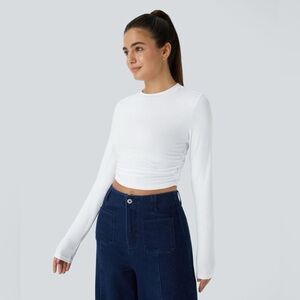 Halara White Round Neck Long Sleeve Ruched Skinny Cropped Casual Top Medium