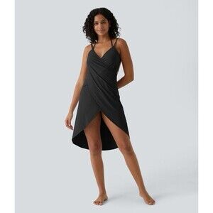 Halara Woman Large Black Spaghetti Strap Crossover Wrap Cover-Up Resort Swim Nwt