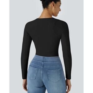 Halara Women's Curved Hem Round Neck Long Sleeve Waffle Top M Medium New