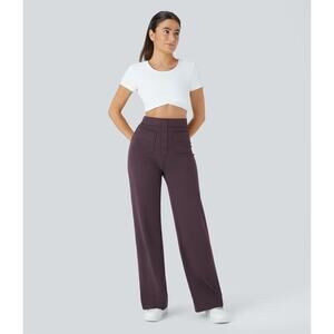 Style: High-waisted straight-leg pants in Dusky Evening purple with button details and functional pockets. Stretchy, comfy, and versatile — perfect for office days, business casual looks, travel, or relaxed weekend wear. These Halara pants blend comfort and polish for the modern, on-the-go professional aesthetic.