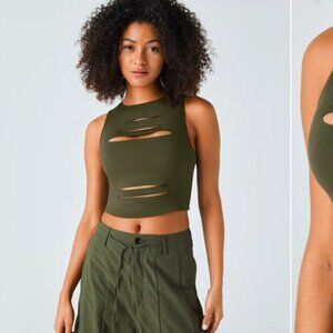 Racerback cutout ripped cropped casual tank from Halara. Brand new, never worn, tags still attached and in original packaging. Love the style but I ordered the wrong size.