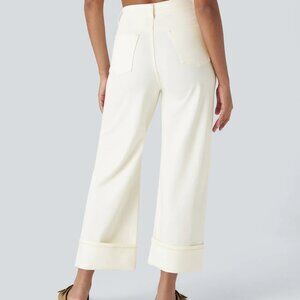 Halara Flex™ High Waisted Multiple Pockets Rolled Hem Wide Leg Washed Stretchy Knit Casual Jeans