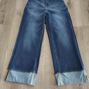 Halara Flex High Waisted Multiple Pockets Rolled Hem Wide Leg Jeans Small Tall