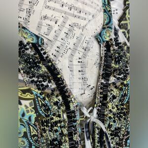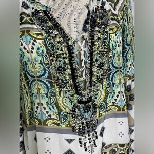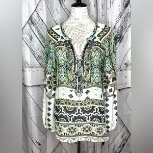 Semi-sheer paisley tunic with balloon sleeves with elastic wrists