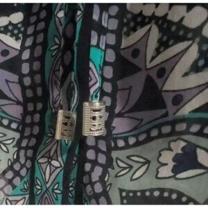 Hale Bob 100% Silk Chiffon Long Sleeve Boho Blouse Top SZ M Midnight Blue