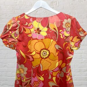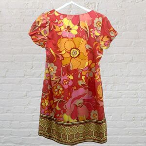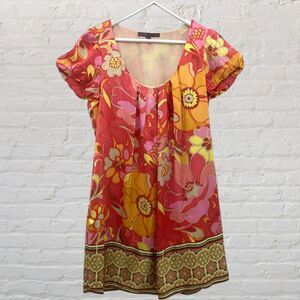 Hale Bob 100% Silk Floral Dress Coral Boho Border Print S Mini