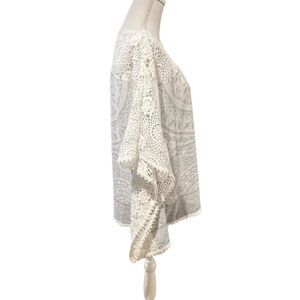 Hale Bob Beachy Mandala Print Tunic Top Sz M Grey White Crochet Trim Boho Resort