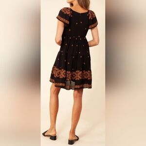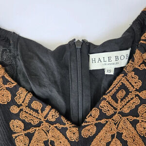 Hale Bob Black Mini Dress with Brown Embroidery -Size XS -100% Rayon