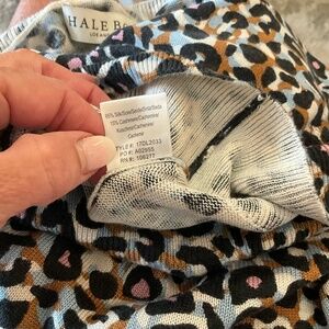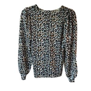 This relaxed Hale Bob silk and viscose top features a striking black, white and blue leopard print, complemented by elegant puff sleeves and a charming crew neck. The lightweight fabric drapes beautifully, making it a versatile addition to any wardrobe.