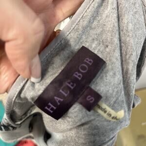 Hale Bob Blouse Women's Size S Gray Sheer Feathers Boho Peasant Lagenlook Casual