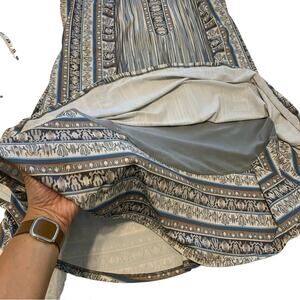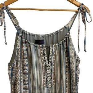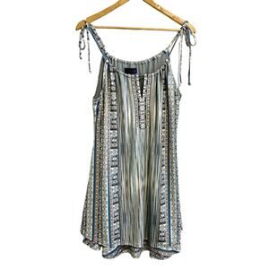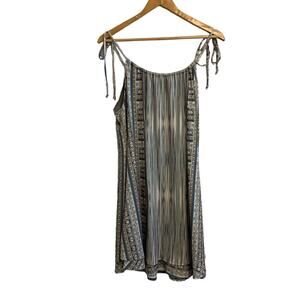 Hale Bob Blue and Brown Patterned Striped Boho Swing Mini Dress