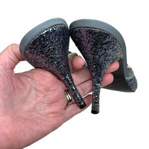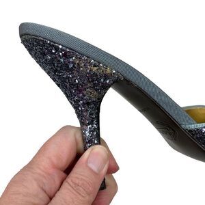 Hale Bob Bo Blue Glitter Heels Rhinestones Jewels Bows 8.5 Slides Mules