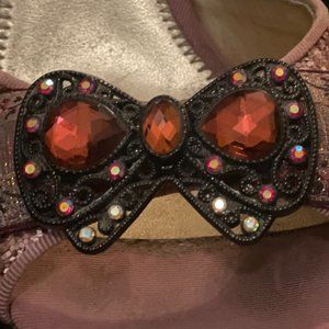 Hale Bob Bo Pink Glitter Heels Rhinestones Jewels Bows 7 Slides