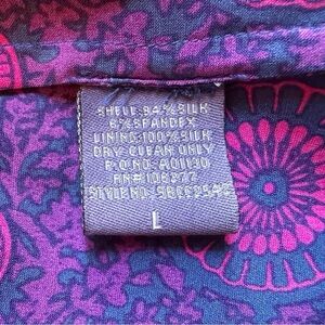 Good pre-owned condition. One visible stain on the chest area (shown in photos). Fabric shows minor wear typical of silk.