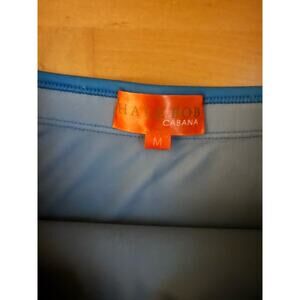 The Hale Bob Cabana Aztec Print Blue One Piece Swimsuit in size M is a stylish and trendy swimwear option for women. The Aztec print pattern adds a unique and playful touch to the classic one-piece design, while the vibrant blue color keeps you looking fresh and bold by the pool or on the beach. Made by the reputable brand Hale Bob, this swimsuit is sure to provide both comfort and style for your next sunny outing.