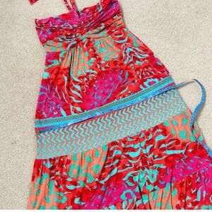 Hale Bob Cabana Maxi Dress Halter Style Resort Beach Tie Neck Vibrant Print XS
