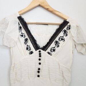 Hale Bob Cream & Black Embroidered Midi Dress | Size XS