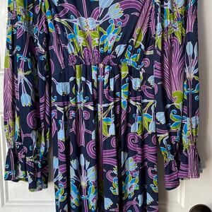 Hale Bob Dress Eclectic Blue Green & Purple V Neck Size Small