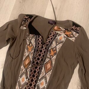 Hale Bob Emmeline Embroidered Tunic mini Dress size S olive green