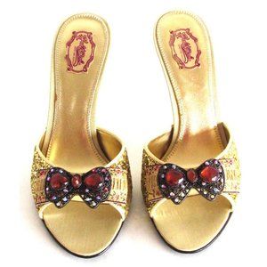 Hale' Bob Gold Glitter Metal Bow/Color Stones Detail Designer Mules Size 8.M