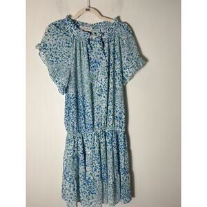 Hale Bob Green Blue Print Flutter Sleeve Mini Dress Sz M