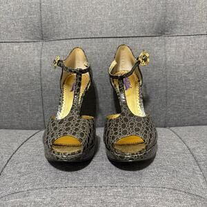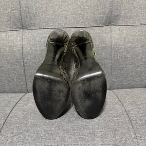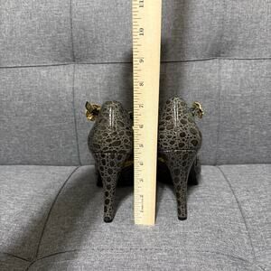 Hale Bob High Heel Shoe Women 7 Black Gray Alligator Leather Pump Peep Toe