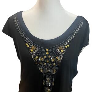 Hale Bob | Jeweled & Beaded Embellished Boho Tie-Back Tunic Top | Black | Large