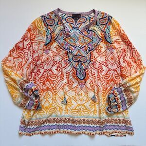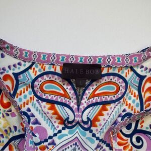 Hale Bob Jolie Bohemian Multicolor Summer Silk Blouse Size Large