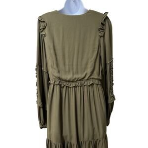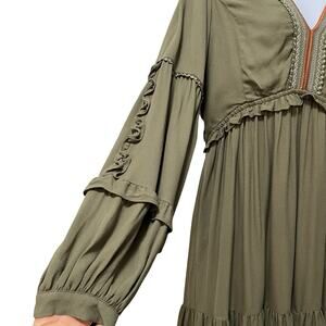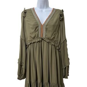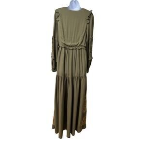 Hale Bob Josephine Embroidered Tiered Maxi Long Dress Size L Olive Green Boho