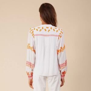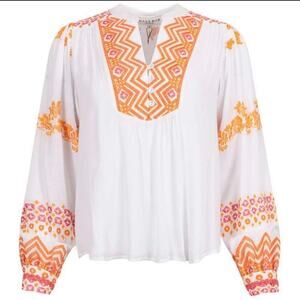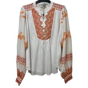 Hale Bob Kizzy Embroidered Crinkle Gauze Top Size Large NWT