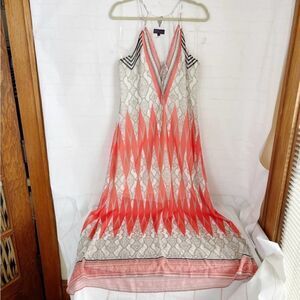 Hale Bob Medium Maxi Dress V Neck High Low Snakeskin Print Lined Sleeveless