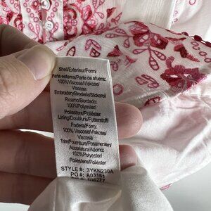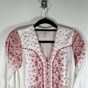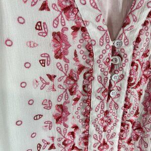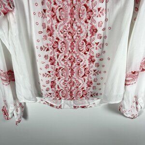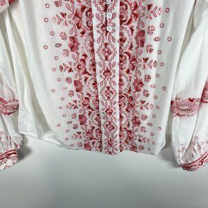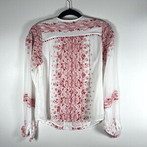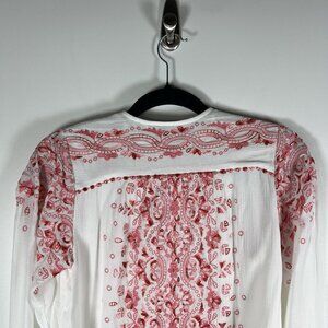 Hale Bob Mimi Embroidered Crepe Top XS White Pink Boho Hippie Floral