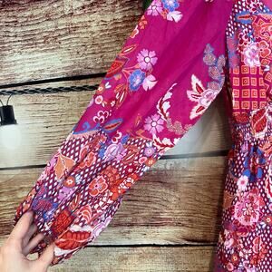 Hale Bob Mini Dress XS Paisley Fuchsia Bubble Long Sleeves Pink Floral Sundress