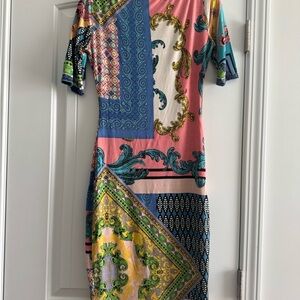 Vibrant geometric patterns. Short sleeves. Scoop neckline. Perfect for any occasion.