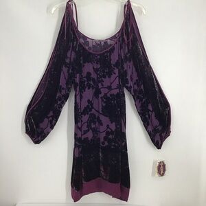 Hale’ Bob NWT Floral Mesh & Velvet Silk Blend Tunic Dress Open Sleeve Boho Purple Size Med