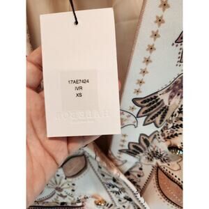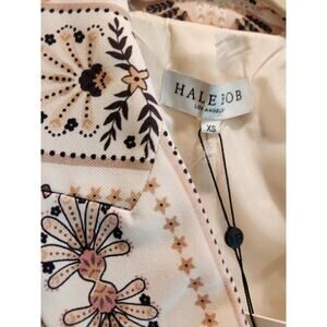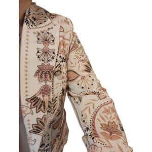 Brand new with tags Hale Bob Los Angeles paisley-print blazer in size XS. Features a stunning boho-western inspired print in warm neutral tones, gold-tone crest buttons, and a tailored silhouette. Length: 27 inches, Width: 18 inches. A unique and stylish piece, perfect for dressing up or layering over casual looks.