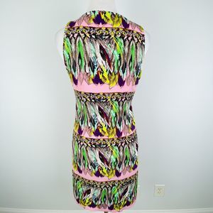 Hale Bob Pink Feather Print Dress Women Small Sleeveless Shift V-Neck Cinched